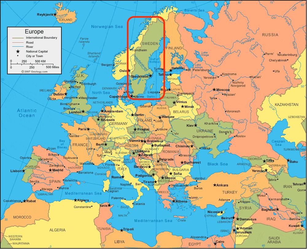 Mapa de Europa de Suecia. Suecia mapa de Europa (Norte de Europa - Europa) para imprimir. Suecia mapa de Europa (Norte de Europa - Europa) para descargar. Suecia (Listeni/ˈswiːdən/ swee-dən; en sueco: Sverige [ˈsværjɛ]), oficialmente el Reino de Suecia (en sueco: Sobre este sonido Konungariket Sverige), es un país nórdico situado en la península escandinava, en el norte de Europa. Con 449.964 km2 (173.732 millas cuadradas), Suecia es el cuarto país más grande de toda Europa, y el más grande del norte de Europa, como puede verse en el mapa de Suecia en Europa. Gotland y Öland son las islas más grandes de Suecia; Vänern y Vättern son sus mayores lagos. Vänern es el tercero más grande de Europa, después del lago Ladoga y el lago Onega en Rusia